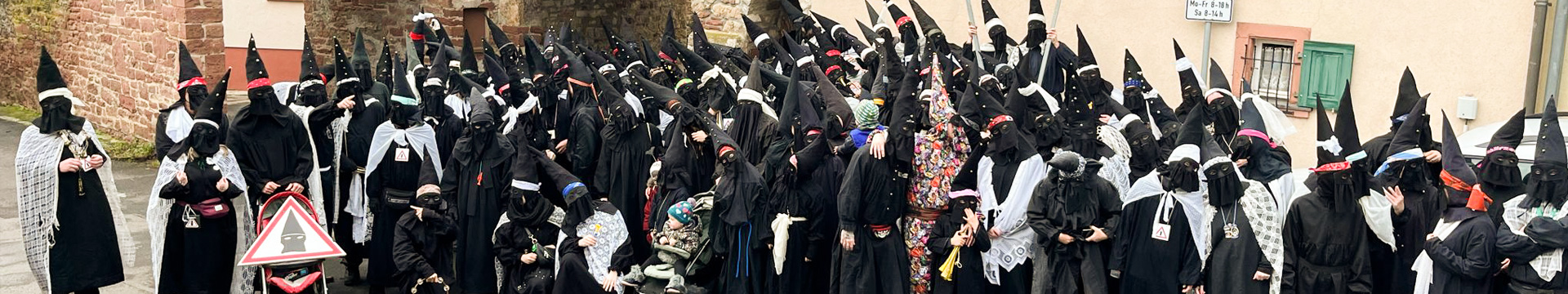 Hierbei wird Rosenmontag und Faschingsdienstag in den typischen schwarzen Kostümen von Haus zu Haus gezogen und am Ende beider Tage der Fasching beerdigt. Auf dieser Seite findet ihr viele Informationen über die Herkunft des "Domino" und die Geschichte dieses Fastnachtsläufers in Thüngersheim.